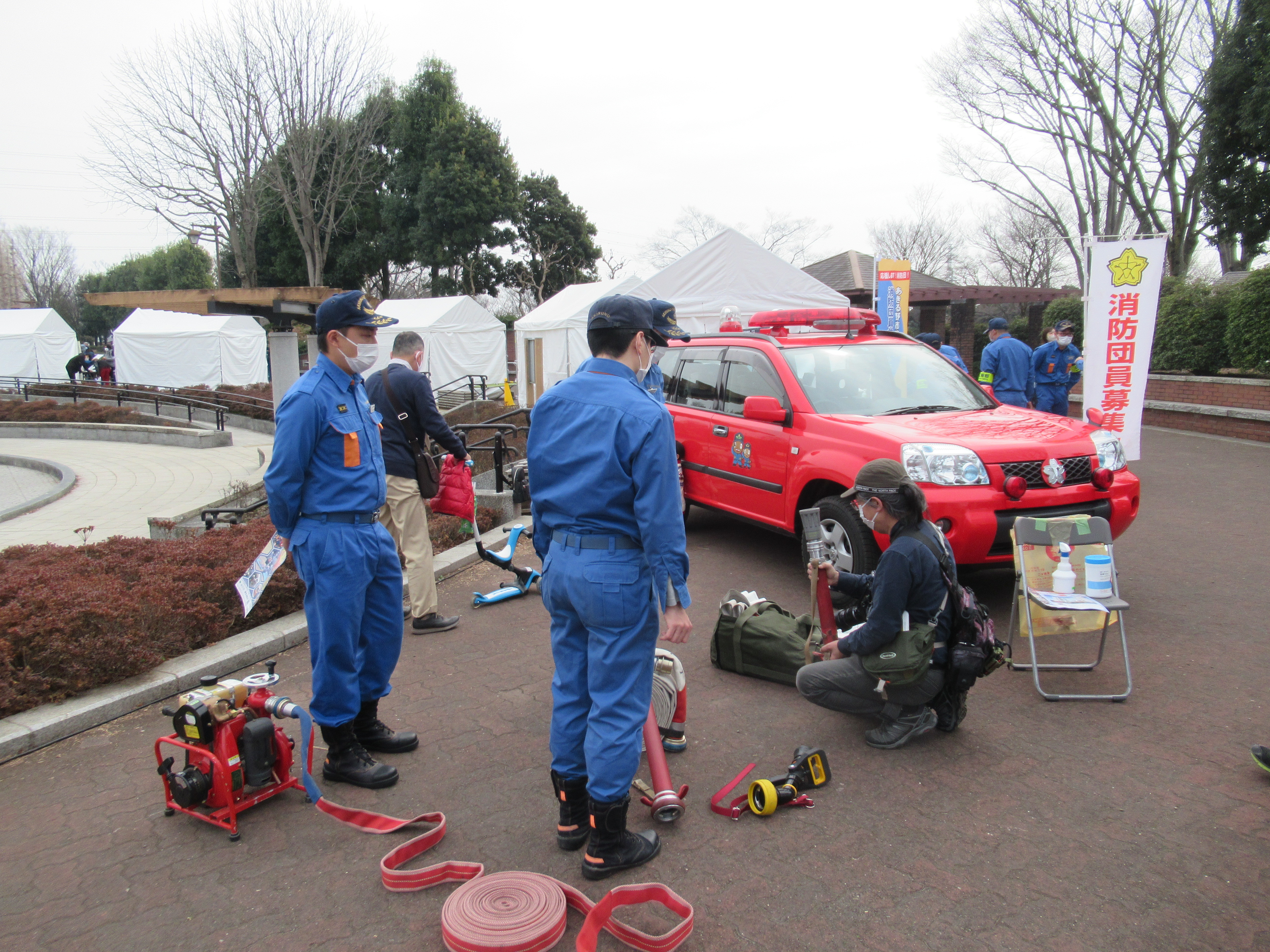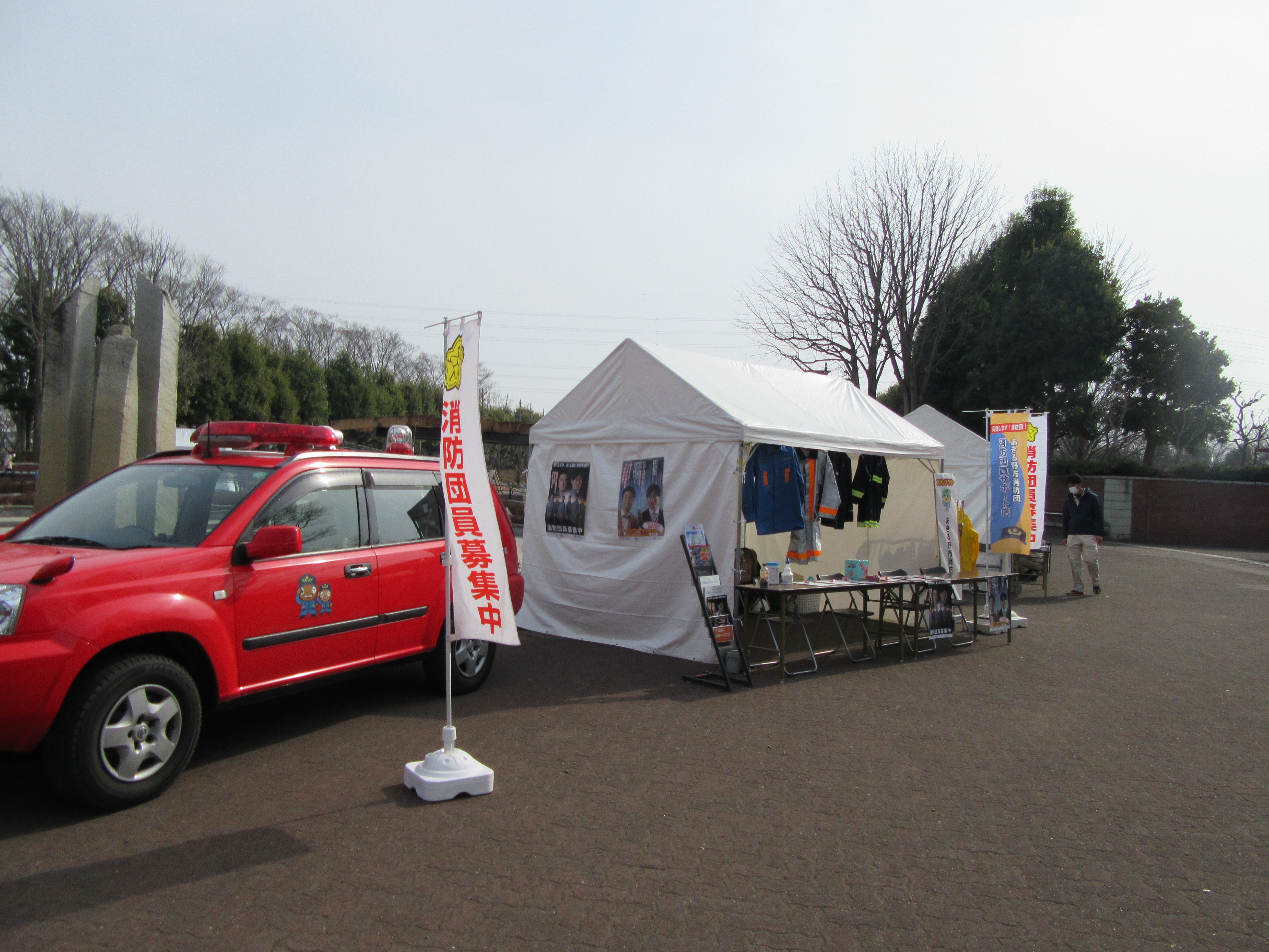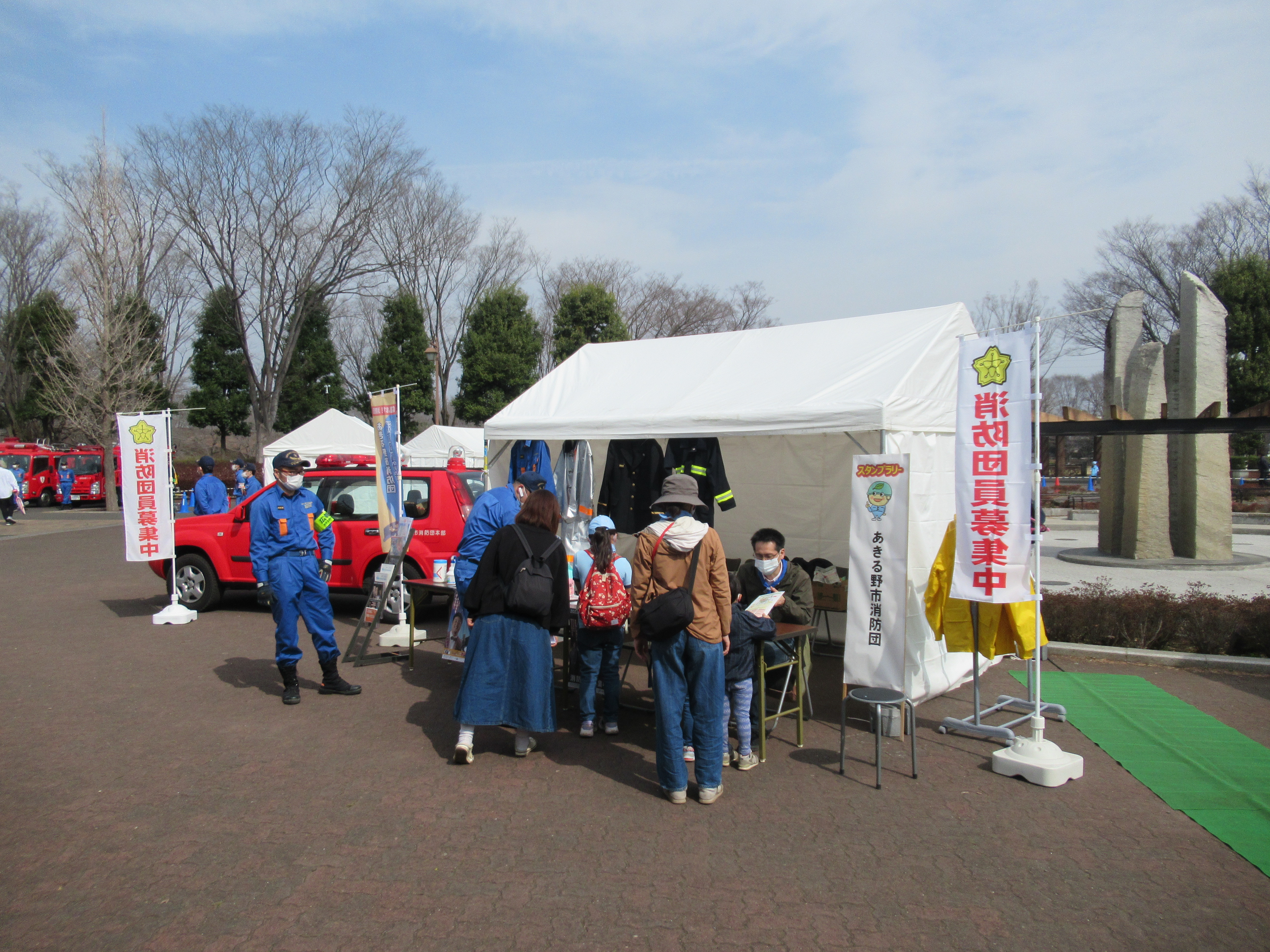 3月13日(日曜日)秋留台公園で開催された「防災フェスタ」に消防団がブースを出展し、広報活動を行いました。