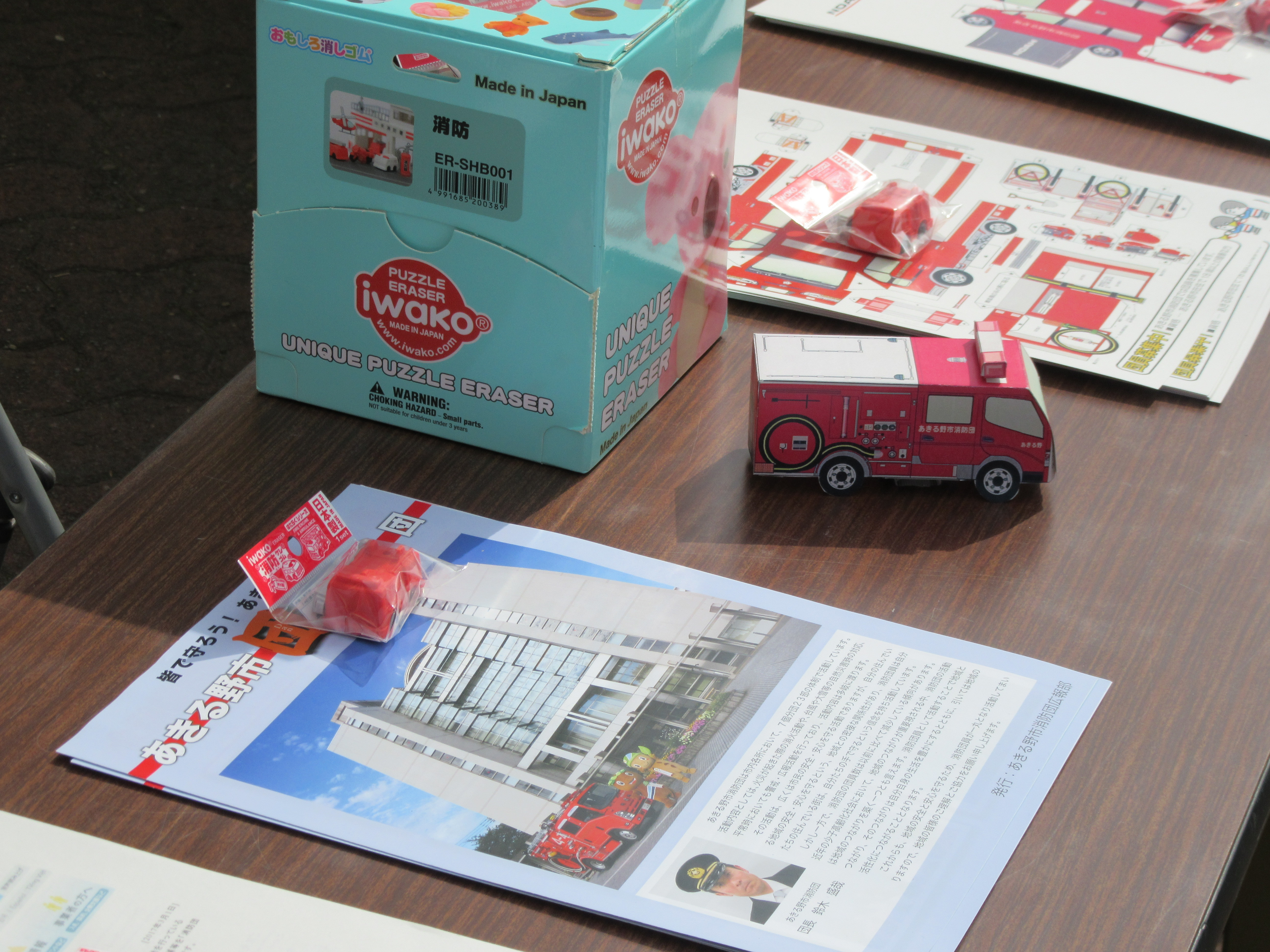 消防団広報部員による団員募集のPR活動をはじめ、消防資機材や車両の展示、ペーパークラフトの配布などを行いました。