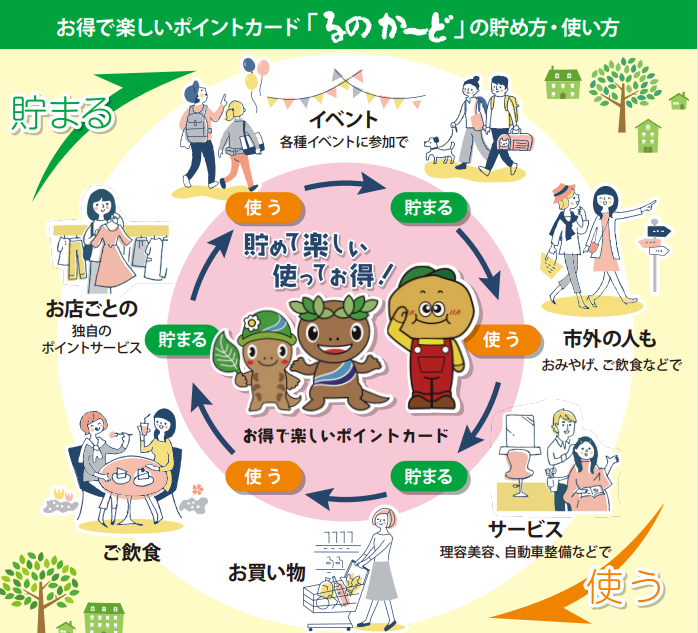 るのかーどは、あきる野市・檜原村内の加盟店で使用できる、地域ポイントカードです。