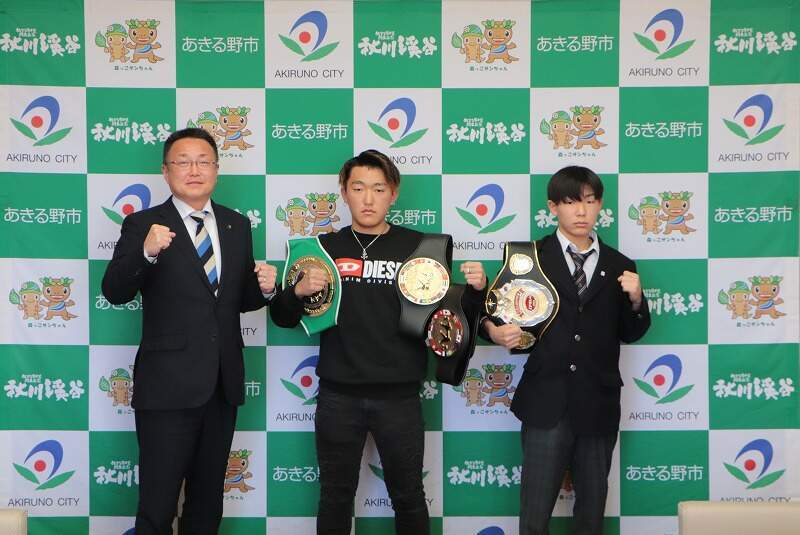市内在住で、ムエイタイ選手の櫻井竜馬さん、ボクシング選手の櫻井嵐さん(秋留台高校)のご兄弟が、市長を表敬訪問しました。