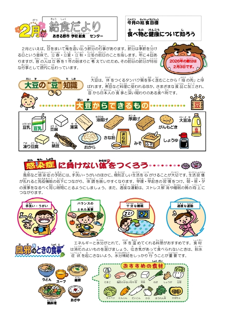 令和8年2月の献立表・給食だより・学校給食の食材産地について