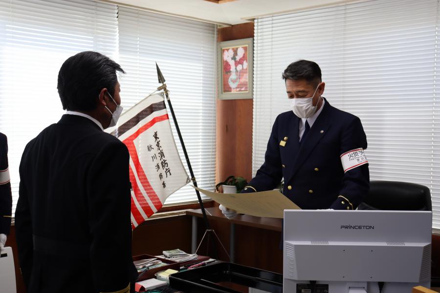 令和5年3月7日、五日市在住であきる野市消防団長の鈴木盛哉氏が、東京消防庁消防総監表彰を受賞されました。