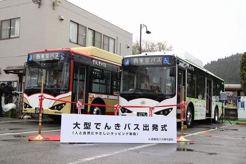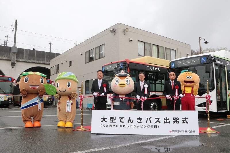 3月28日(火曜日)、西東京バスの五日市営業所車庫内で、大型EV路線バス出発式が開催されました。