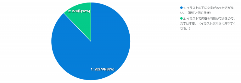 1、イラストの下に文字があったほうが良い(現在と同じ仕様) 2,027件(88%)