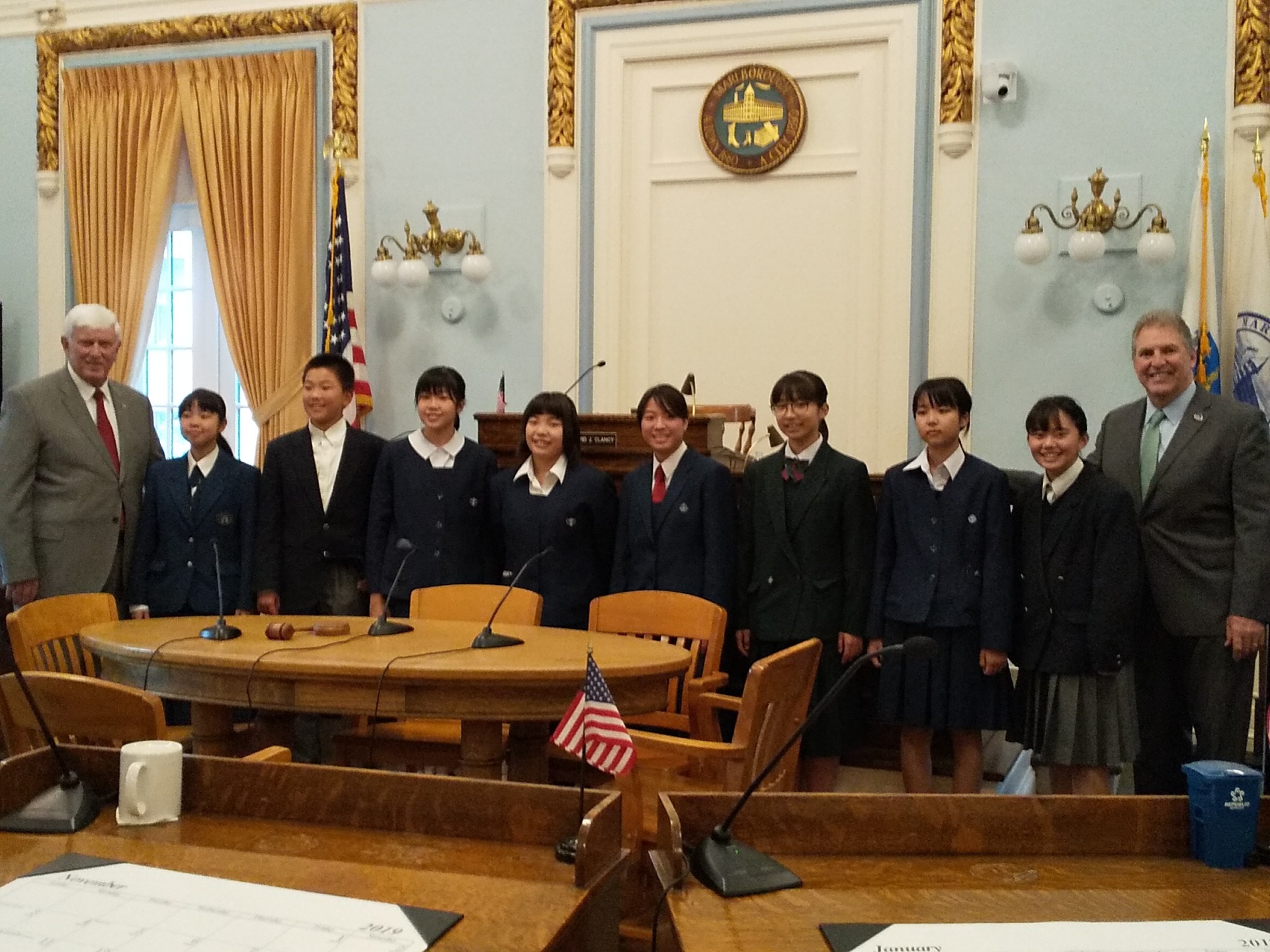 市役所ではみなさん英語でスピーチを行い、派遣団員全員に名誉市民賞をいただきました。