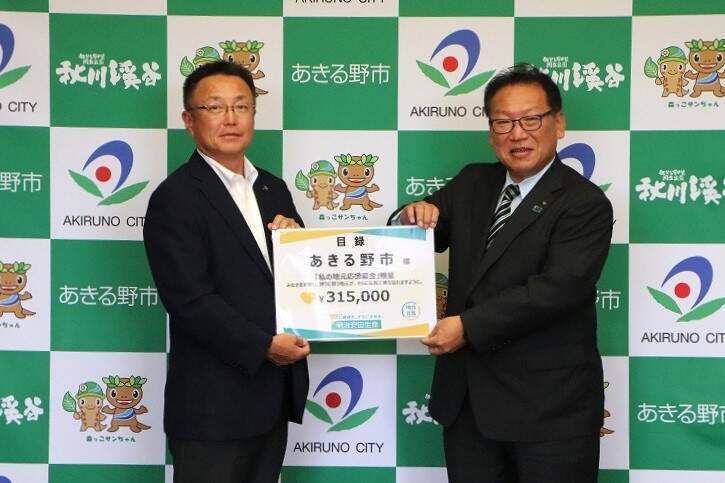 10月10日(火曜日)、明治安田生命様から、地域のみなさんの健康づくりや暮らしの充実のために「私の地元応援募金」として、31万5千円の寄付をいただきました。