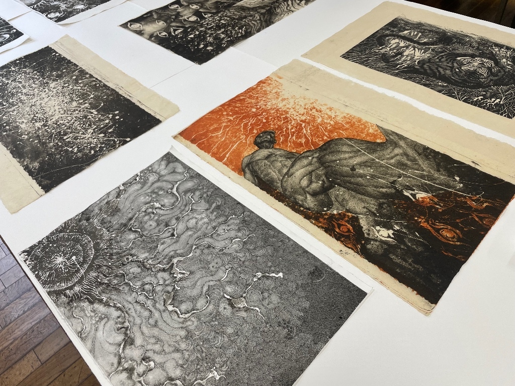 戸倉地区にあるアートスタジオ五日市では、現在、国内外の版画アーティストを招へいして、滞在しながら創作活動を行うアーティスト・イン・レジデンス事業を行っています。