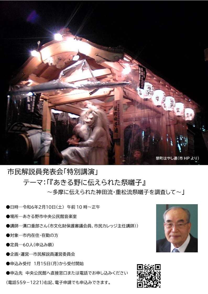 テーマ:「あきる野に伝えられた祭囃子」~多摩に伝えられた神田流・重松流祭囃子を調査して~