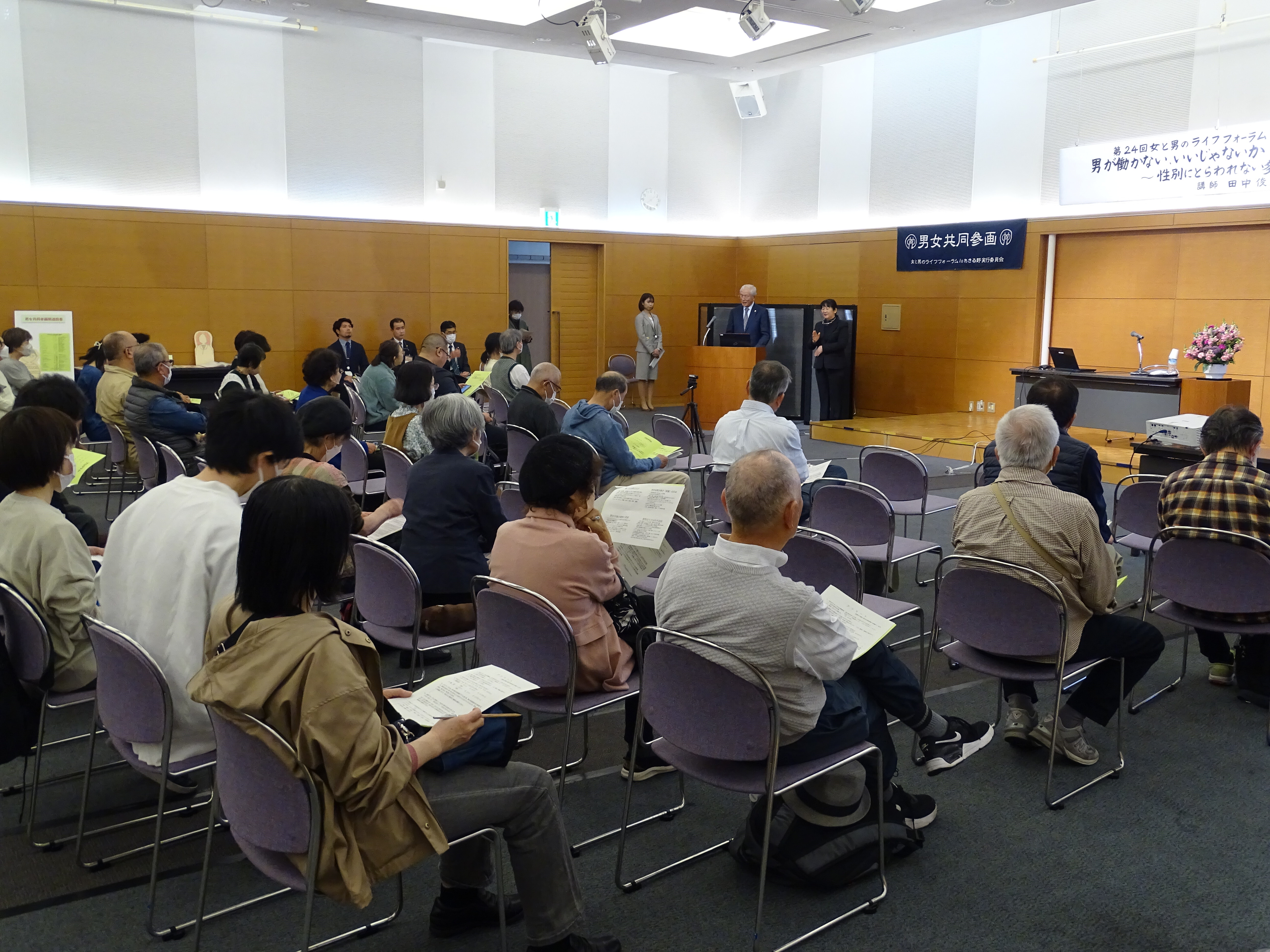 3月30日、ルピアホールにて「第24回女と男のライフフォーラムinあきる野」を開催し、41名の方にお越しいただきました。また、前回に引き続きオンライン配信を行い、6名の方にご参加いただきました。