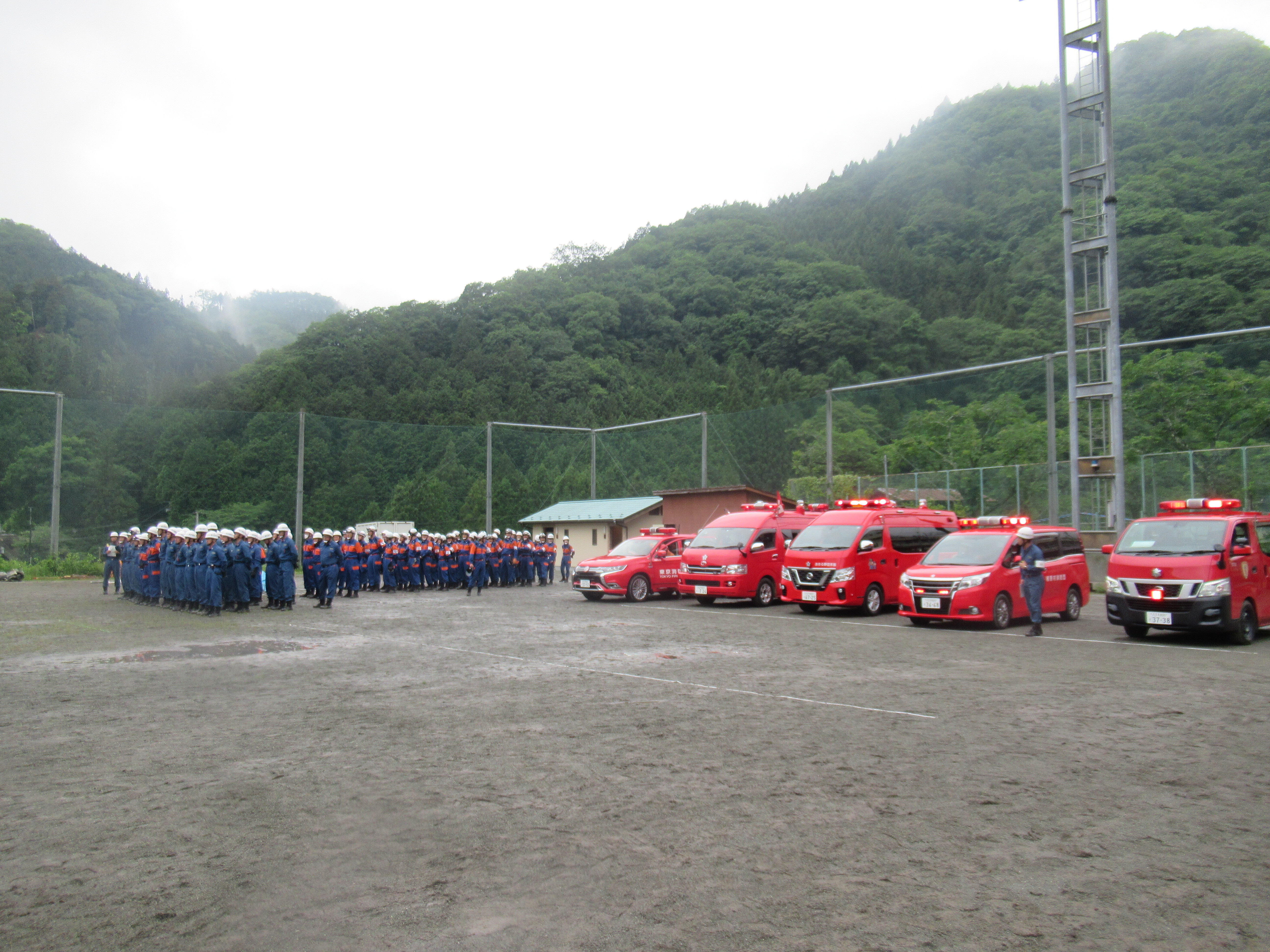 この訓練は、台風や集中豪雨により土砂災害などの水害が予想される時季を前に、秋川消防署、秋川流域の各消防団及び各機関との連携した訓練を行い、水害への対応能力の強化を図ることを目的として実施されました。