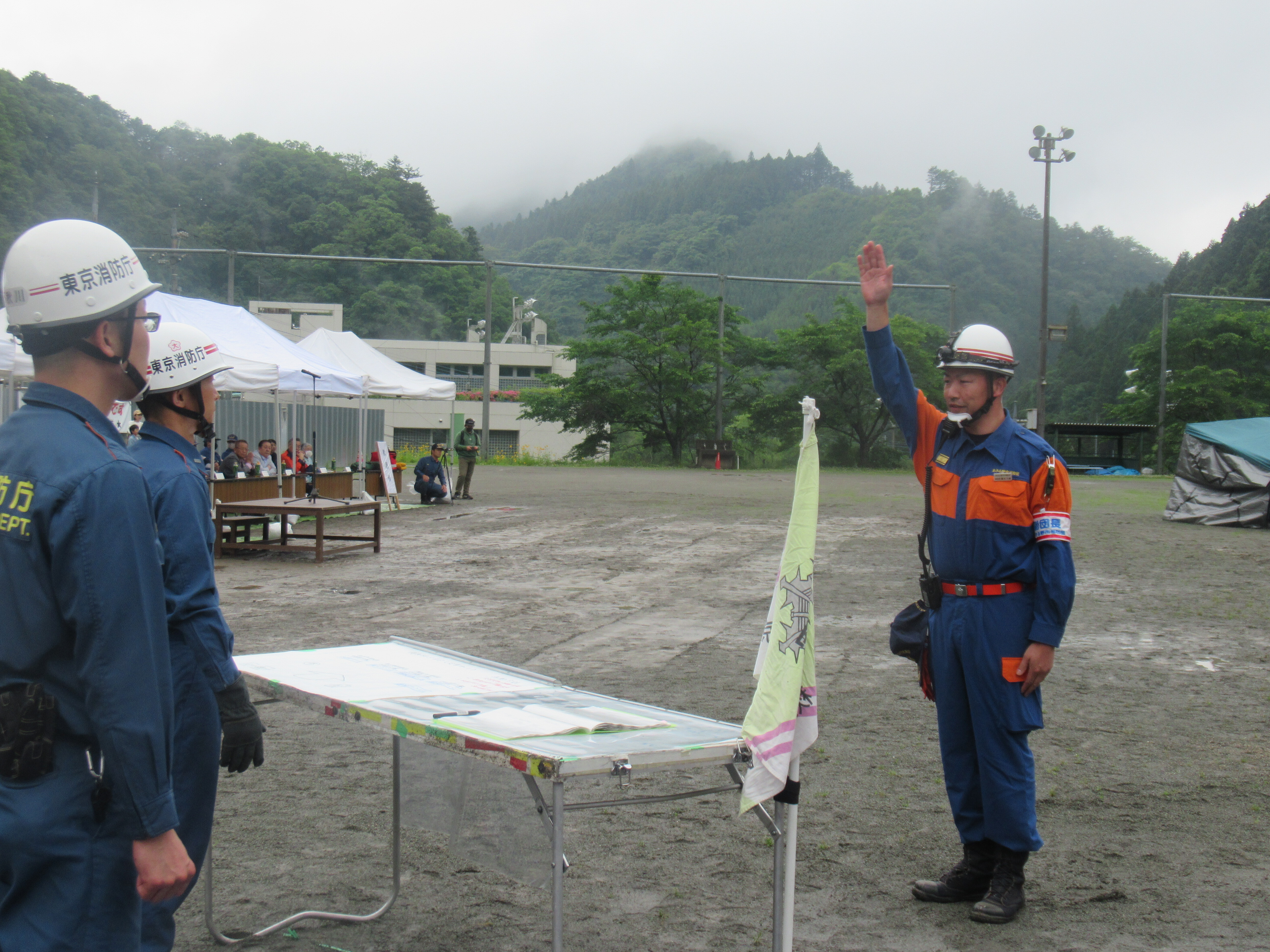 消防団指揮本部へ到着報告