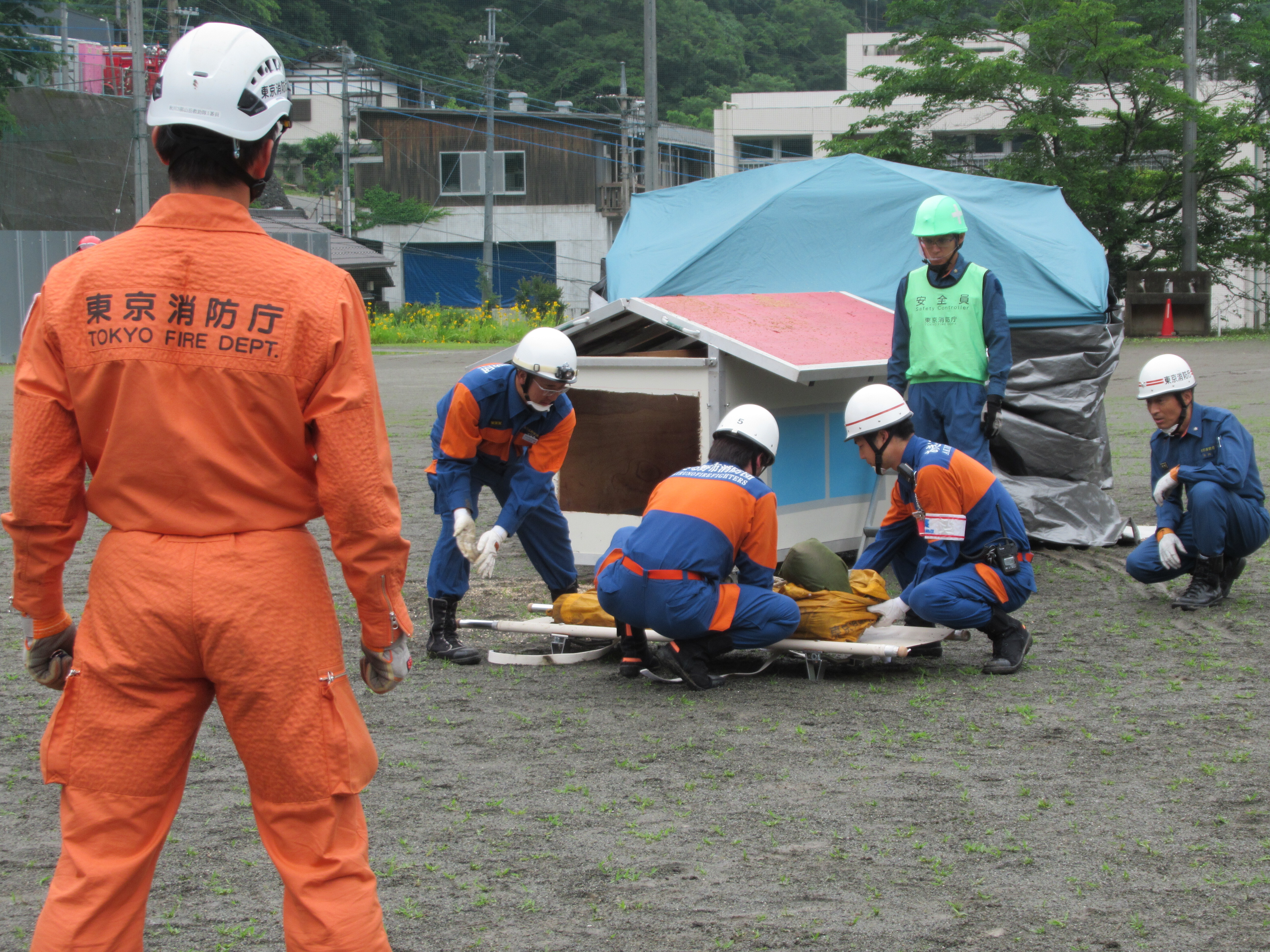 バスケット担架を使用し搬出