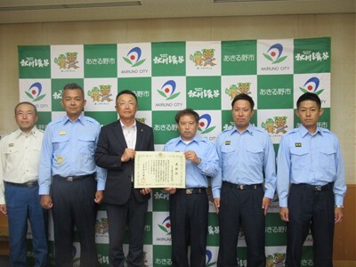8月20日、東京消防庁において、あきる野市消防団が消防総監賞を受賞しました。この表彰は、令和7年6月23日に市内で発生した建物火災での消火活動の活躍が認められ、表彰されたものです。当日は、東京消防庁内の消防総監室で表彰式を行った後、東京消防庁第九消防方面本部長とあきる野市長に受賞の報告を行いました。