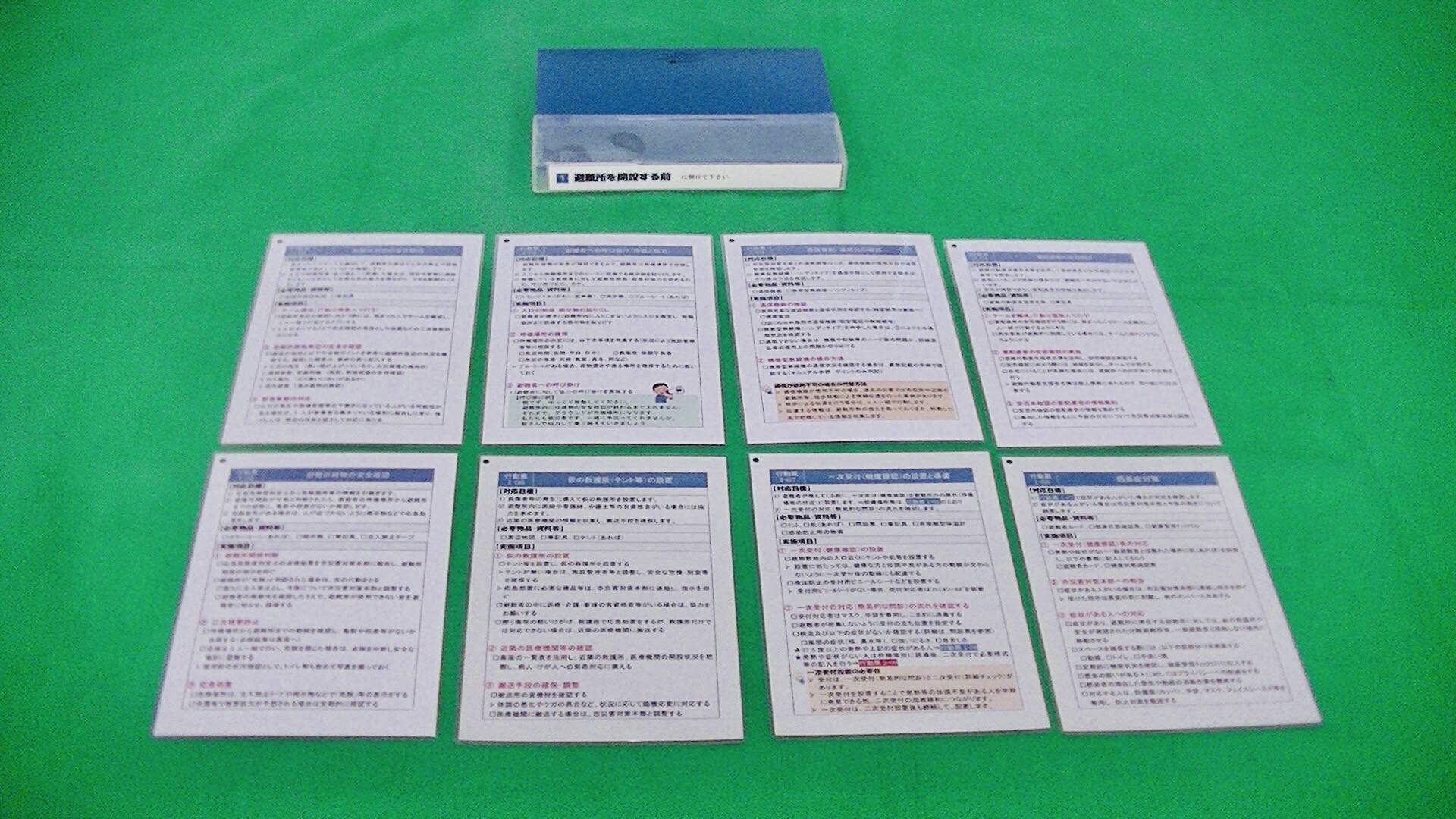 避難者同士が協力して、「今、何が優先か」を見極めながら、少ない人数でも避難所を開設・運営することを目的とし、市内26か所の指定避難所に配備しております。
