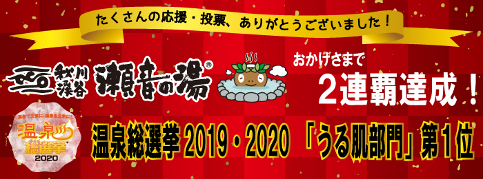 【2連覇達成!】秋川渓谷 瀬音の湯が「うる肌部門」第1位に輝きました!