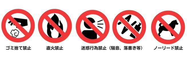 迷惑駐車、騒音となる行為(夜間の花火、大きな話し声など)、落書きはやめましょう。